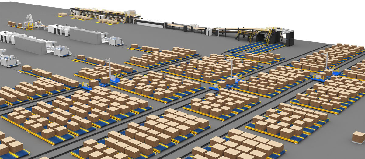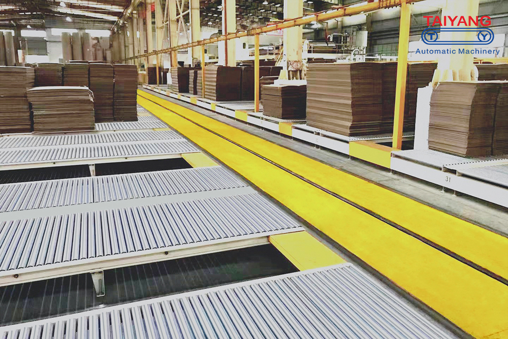 紙板輸送系統(tǒng)可由多個不同類型輸送機和RGV小車組成,根據(jù)工藝流程規(guī)劃而將前后生產(chǎn)工序的設(shè)備進行有機連接,使物料在生產(chǎn)工序間快速靈活流轉(zhuǎn)??筛鶕?jù)客戶需求配置控制和調(diào)度系統(tǒng),實現(xiàn)物料自動化轉(zhuǎn)運。